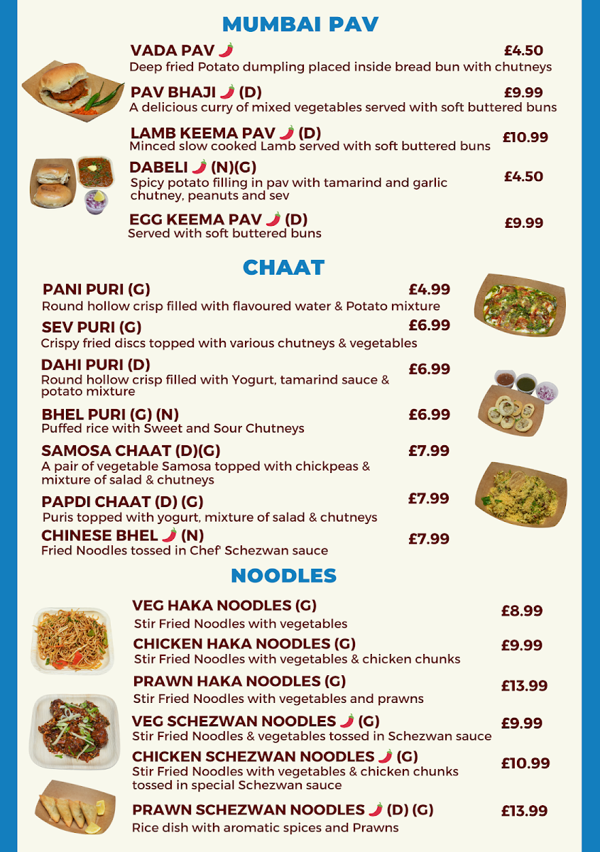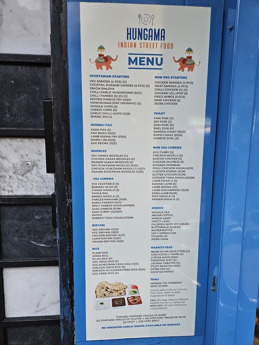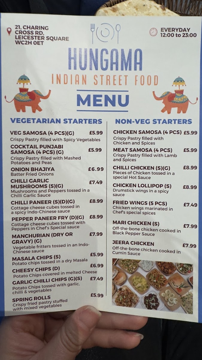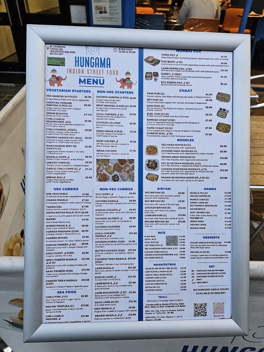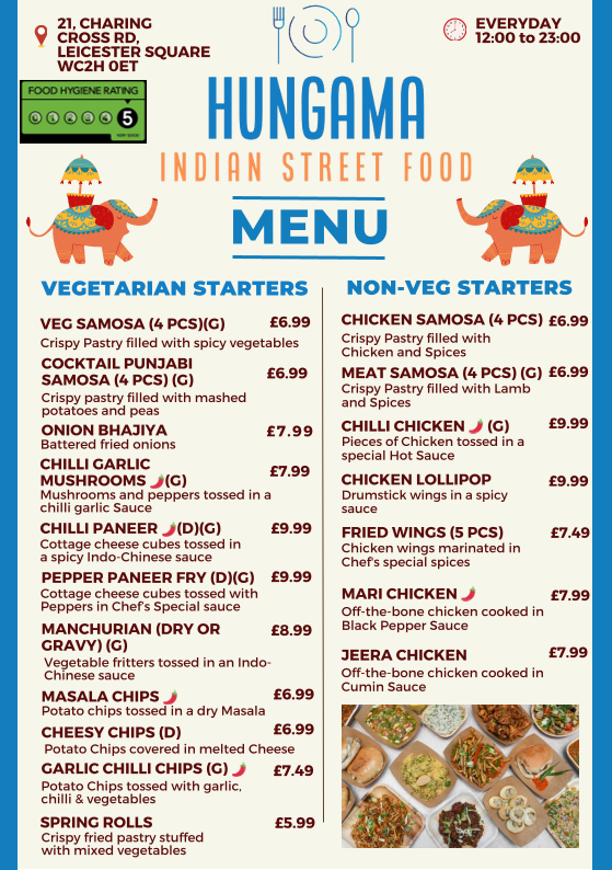 Welcome to Hungama Indian Street Food, where we bring the lively essence of India’s bustling streets right to your plate! Nestled at 21 Charing Cross Rd, London WC2H 0ET, our menu is a delightful invitation to explore an array of tantalizing dishes that are sure to ignite your taste buds. Dive into our mouth-watering Pani Puri and crisp Samosas, or savor the rich flavors of our Lamb Masala and buttery Naan. Don’t miss the magic of our Bombay Style Vada Pav or the spicy goodness of Pav Bhaji, perfect for sharing with friends. Whether you’re in the mood for savory Hakka Noodles or the crispy delight of Masala Chips, every dish is crafted with love and authenticity. Come join us for an unforgettable culinary adventure that’s simply bursting with flavor!